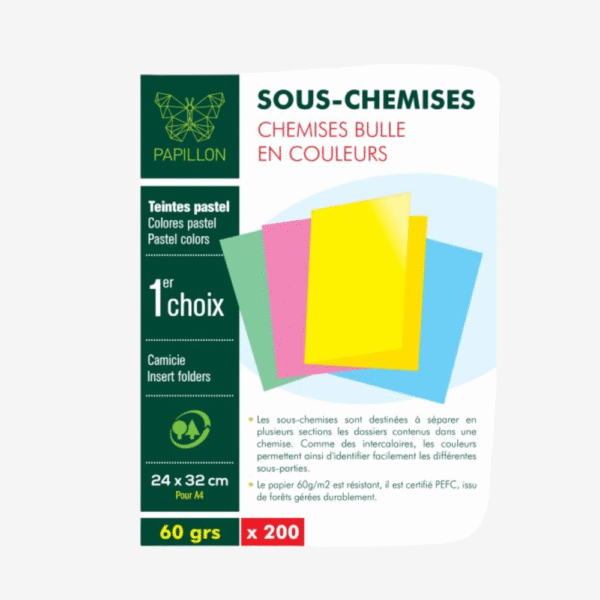 Sous-chemise Bulle Coloris 21*31 Paquet de 250